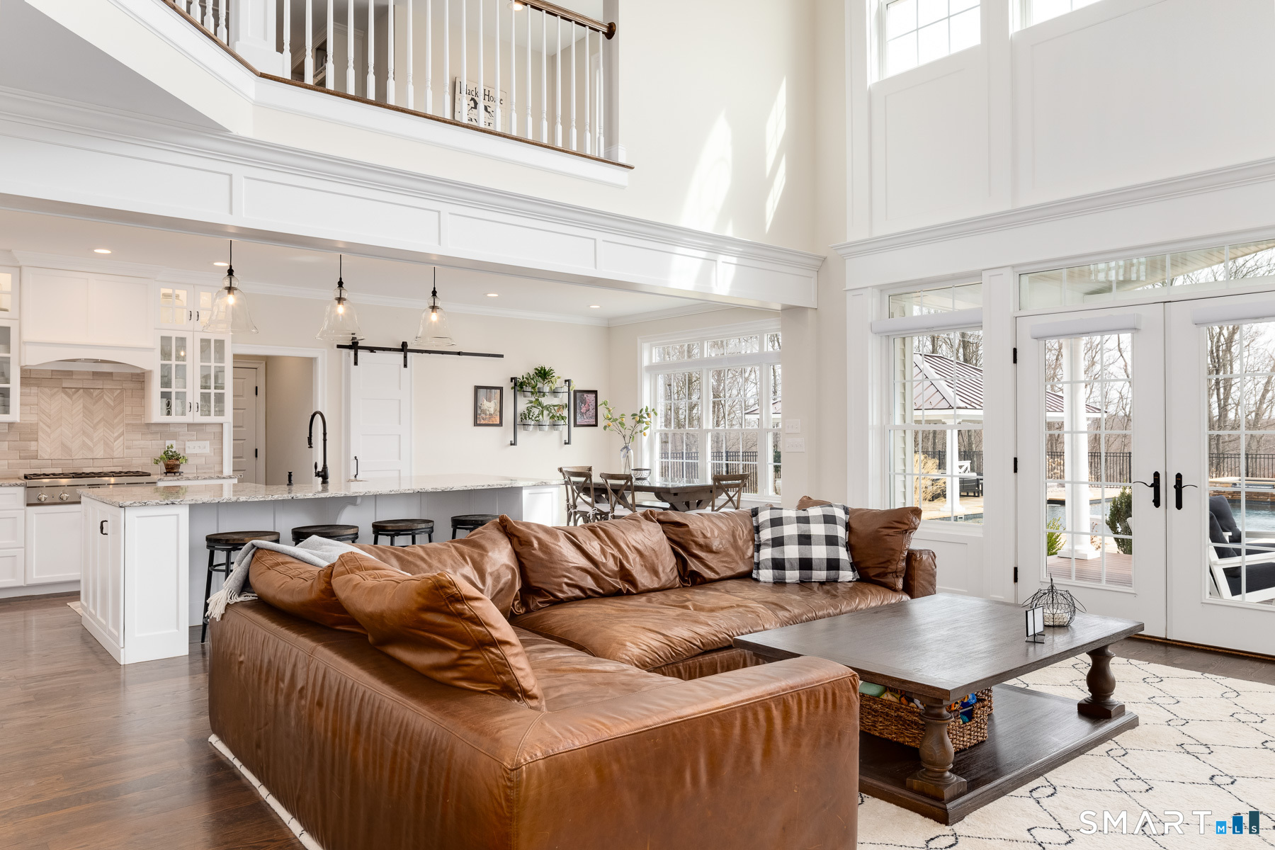 Beautifully situated on 5.4 serene acres at the end of a cul-de-sac, this custom-built 2018 colonial offers resort-style living. Imagine waking up every day to your own private oasis, where a sparkling pool, relaxing spa and a cozy fire pit set the stage for ultimate enjoyment. The outdoor living space is an entertainer's dream, featuring a built-in Napoleon grill and a covered sitting area with a gas fireplace that help to extend the backyard season. The interior features an open and airy floor plan bathed in natural light. The dramatic double-height ceilings in the entryway and family room create a sense of grandeur, while a gas fireplace, flanked by built ins, anchors the space with warmth. The stunning, sunlit kitchen features Thermador and Sub-Zero appliances. The main-level primary suite combines luxury and convenience, offering a tranquil retreat from the day. Upstairs, you'll find three additional bedrooms - two with en suite bathrooms and one with easy access to a nearby hall bath - plus a playroom and a second office. The possibilities continue with an unfinished walkout lower level featuring high ceilings. Whether you dream of a home theater, gym, wine cellar, or all three, this space can be transformed to suit your vision. Come experience the extraordinary blend of tranquility and sophistication at this exclusive retreat.